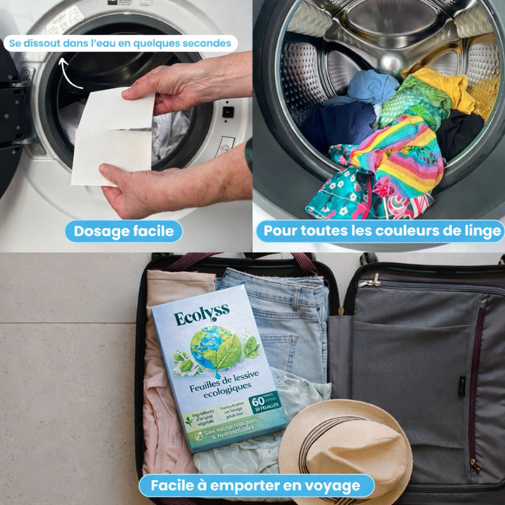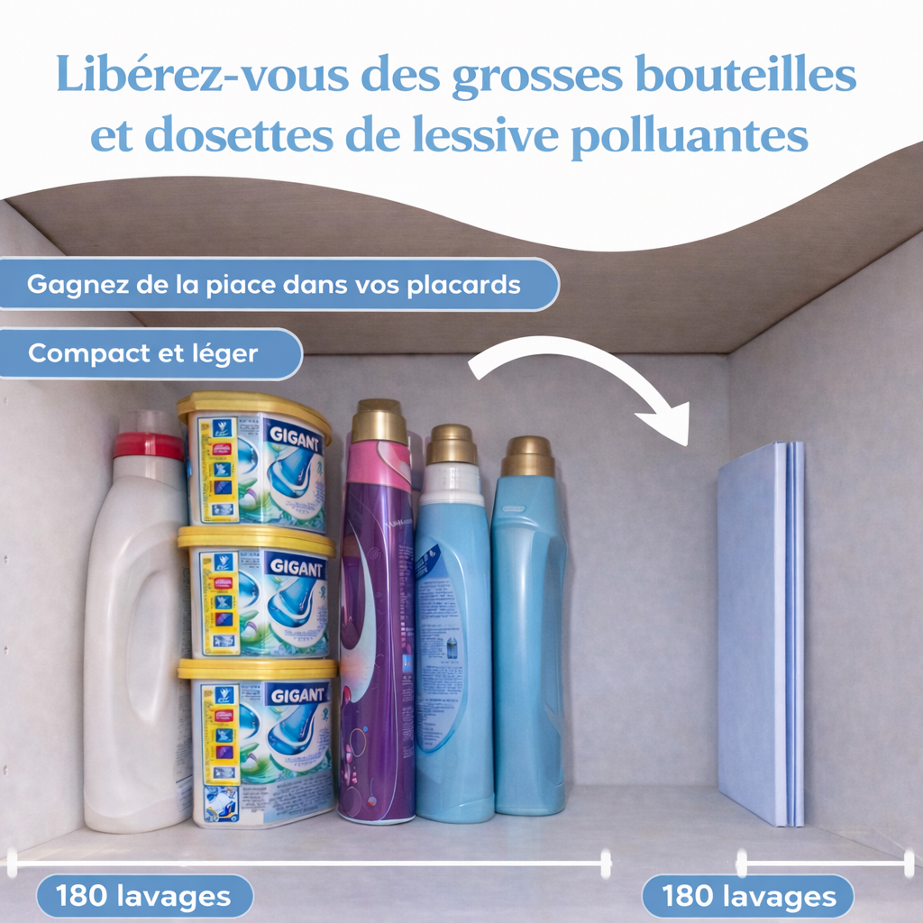 Nos feuilles de lessive végétales offrent un nettoyage puissant tout en respectant votre peau et la planète. Sans plastique, ultra-efficaces et faciles à utiliser, elles transforment votre routine quotidienne en un geste écologique, économique et sain pour toute la famille.